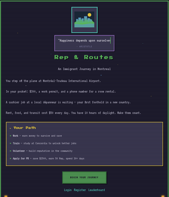Rep & Routes is a narrative simulation about building a new life in Montreal.
